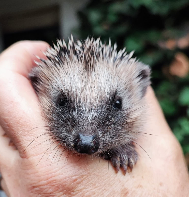 “Ich bin ein Igelkind. Anfangs sind meine Stacheln noch ganz weich. Meine Mama säugt uns sechs Wochen und dann bringt sie uns nachts bei, Insekten zu fressen. Ich muss ganz schnell viel zunehmen, sonst schaffe ich den Winterschlaf nicht! Uns Igeln geht es nicht gut! Es gibt immer weniger Nachtinsekten, und in der Not müssen wir Schnecken fressen und kriegen Würmer: Igitt! Die meisten von uns leben in euren Gärten und Parks, da sind Fallobst und Kompost und Blühpflanzen mit Käfern, Larven und Faltern. Draußen in der Landschaft blüht nicht mehr viel oder es wird totgespritzt. Wenn ich meine Familie verloren habe, laufe ich tagsüber durch euren Garten und wärme mich in der Sonne. Guckt mal auf die Straße, ob meine Mama da liegt! Bitte bringt mich in eine Igelstation.“